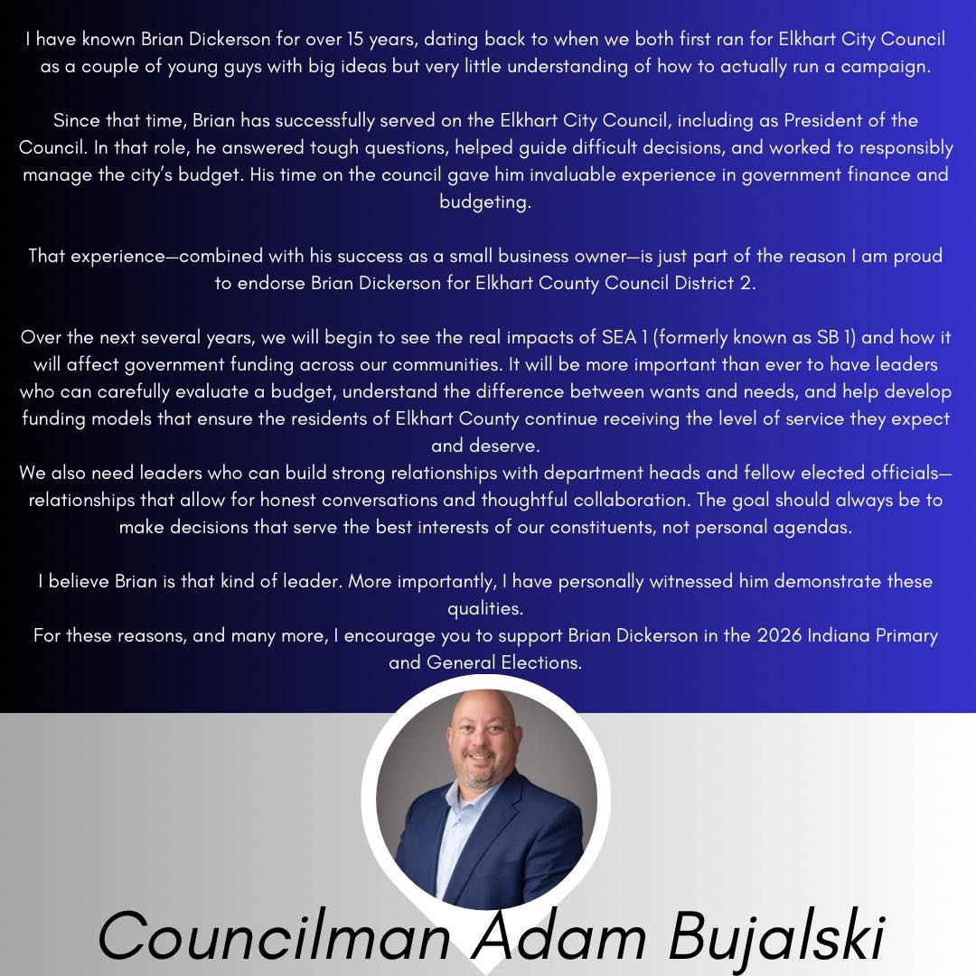 Brian Dickerson for Elkhart County Council